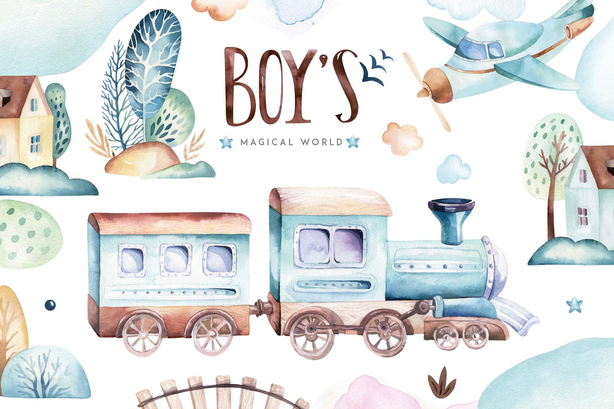 Fliis fototapeet Watercolor locomotive