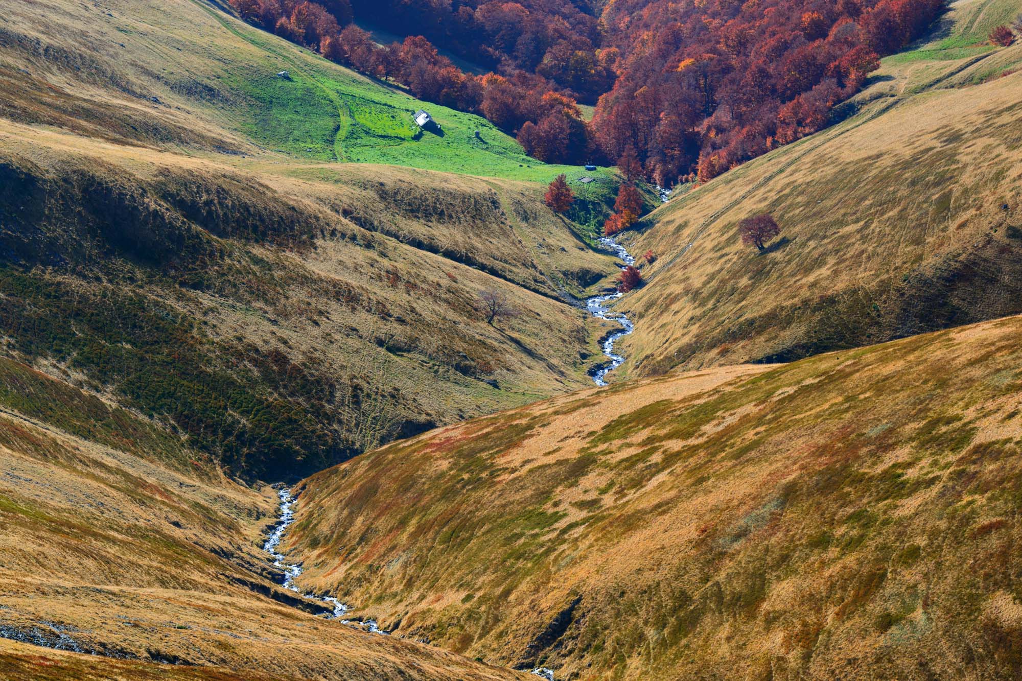 Fliis fototapeet Stream in valley